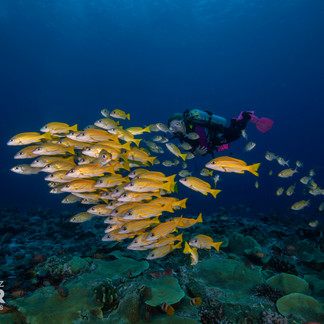 But it’s not only the creatures that are plentiful and diverse, but also the types of diving you can do. There aren’t many places in the world where you start the day in blissful tranquility, slowly making your way through a bright blue sunlit cavern, then hook in on a reef corner before lunch - watching shark after shark swim past, whilst having your space invaded by the local Napolean Fish, Sausage! And then, finish the dive day exploring a Japanese WW2 shipwreck.
